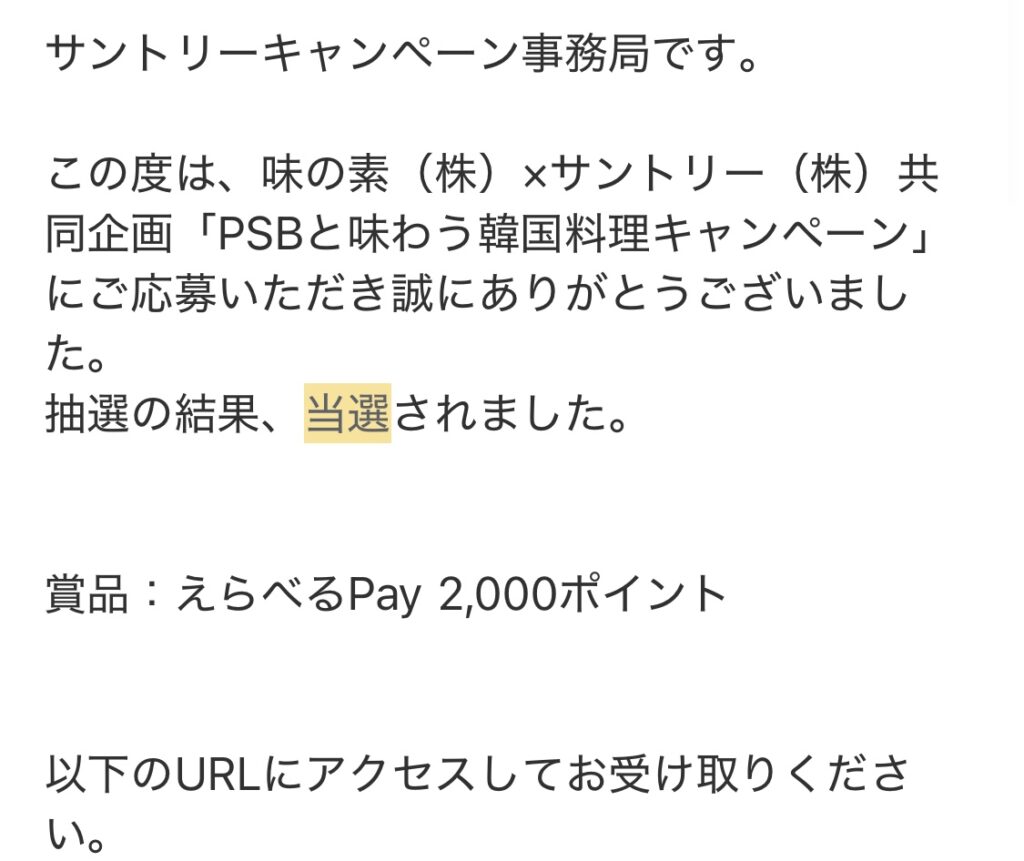 当選報告PSBと味わう韓国料理キャンペーンの当選通知が届きました❤️