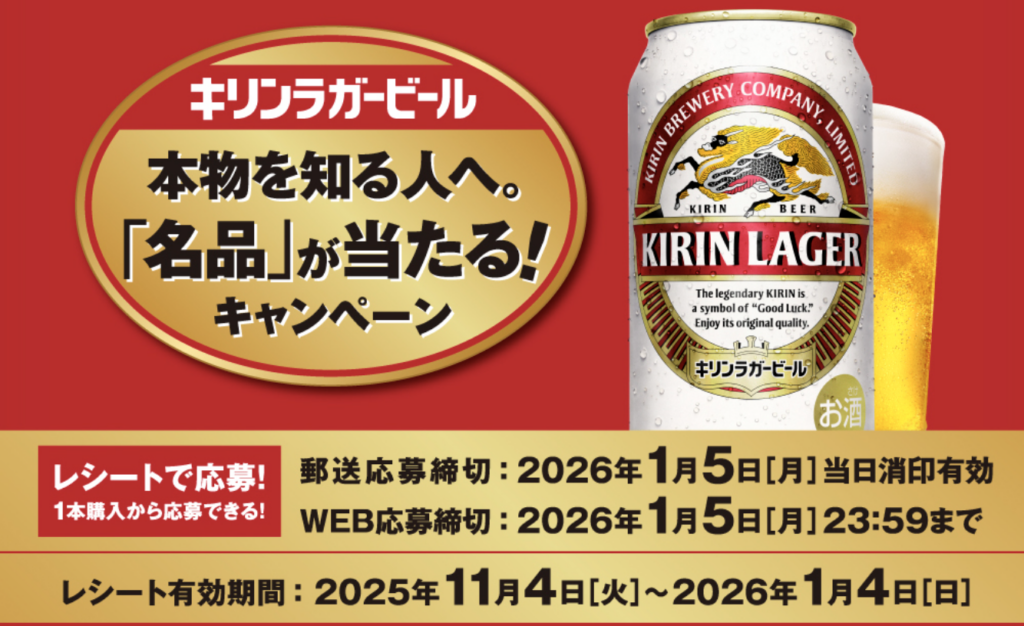 キリンラガービール  本物を知る人へ。「名品」が当たる!キャンペーンに応募します🍺