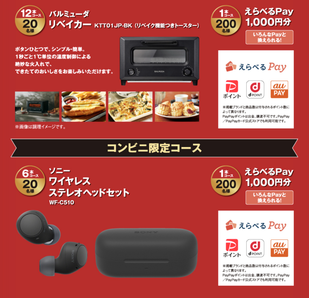 ※対象コンビニ以外でご購入された方は、「コンビニ以外のレシート」コースからご応募ください。