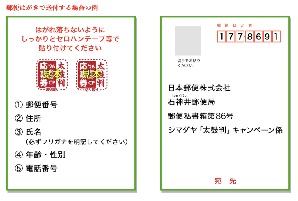 【応募方法】応募券2枚をハガキに貼って応募する 専用のハガキもあり