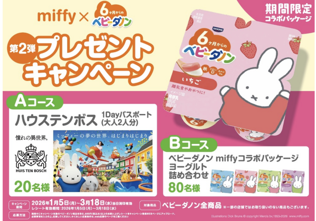 【懸賞】ベビーダノン miffy×ベビーダノンプレゼントキャンペーン(第2弾)