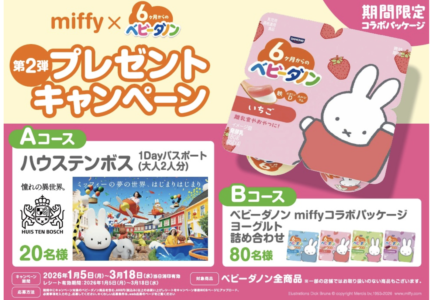Bコース:ベビーダノン miffyコラボパッケージヨーグルト詰め合わせ 80名様
