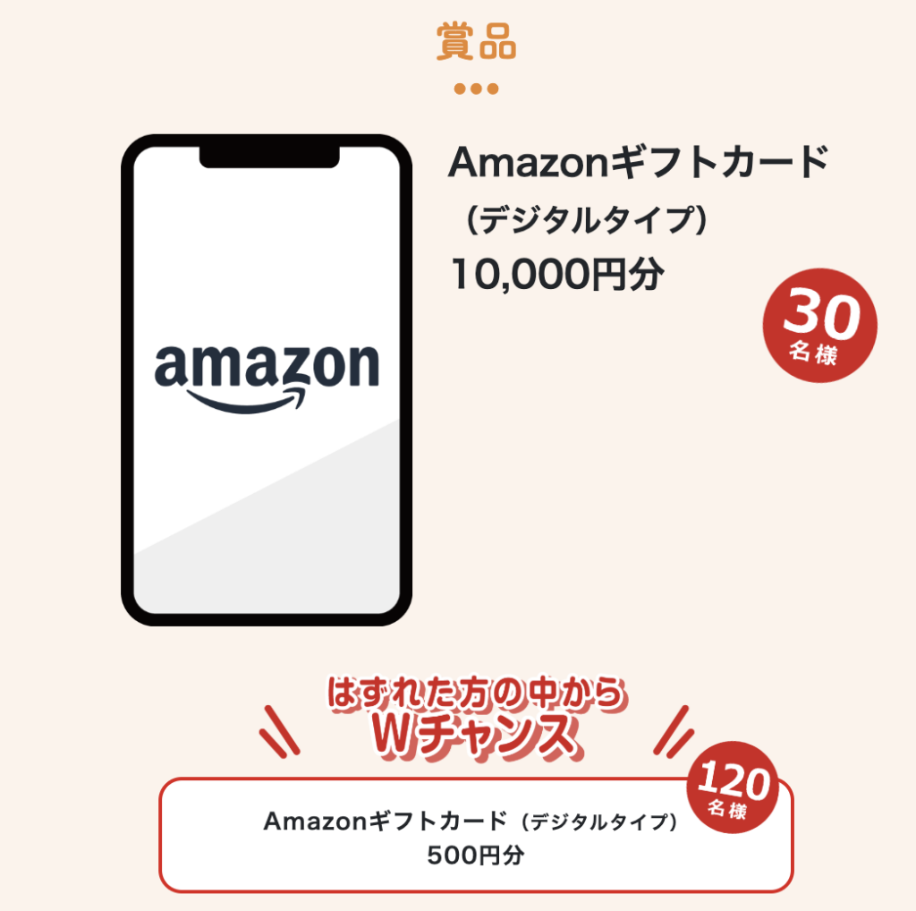 メイン賞:Amazonギフトカード(デジタルタイプ) 10,000円分 30名様