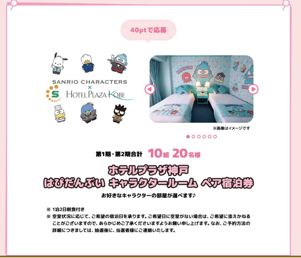 ホテルプラザ神戸 はぴだんぶいキャラクタールーム ペア宿泊券【各期5組10名様(計10組20名様)】