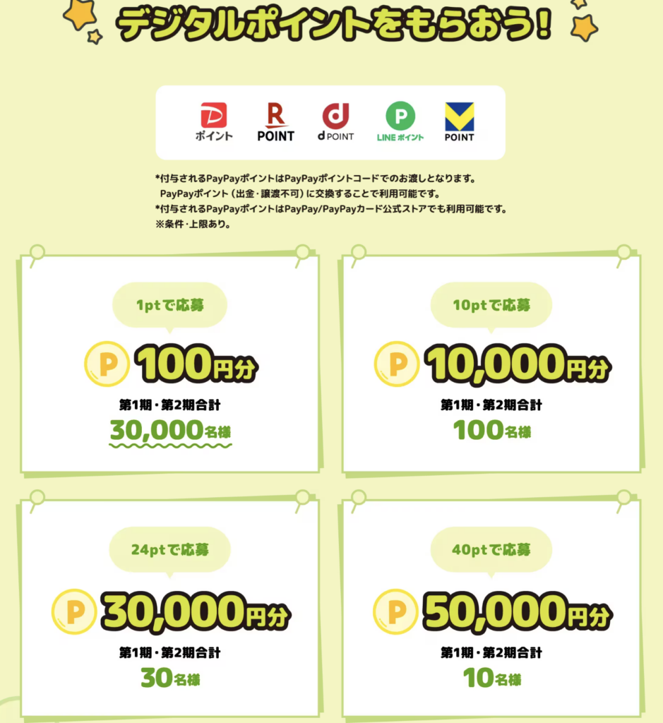 選べるデジタルポイント100円分【各期 15,000名様(計30,000名様)】