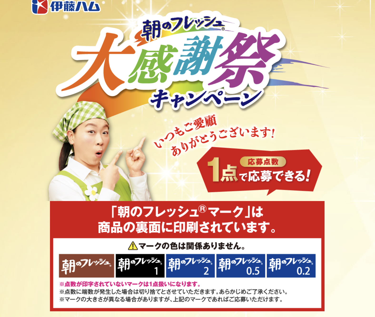 伊藤ハム さんの朝のフレッシュ®「大感謝祭キャンペーン」に応募します😘