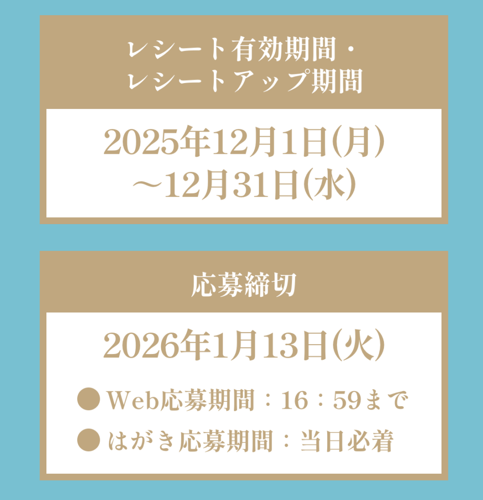 ・レシートアップロード期間:2025年12月1日(月)0:00~2025年12月31日(水)23:59