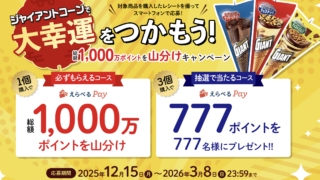 【懸賞】「ジャイアントコーンで大幸運をつかもう!総額1,000万ポイントを山分けキャンペーン」